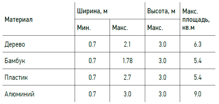 МАТЕРИАЛ И ШИРИНА ЛАМЕЛЕЙ