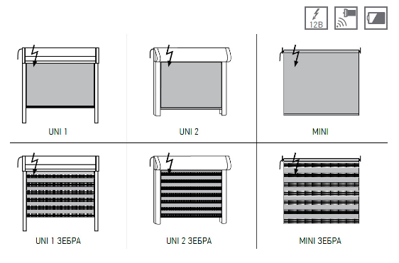 Каждое моторизованное изделие UNI и MINI должно быть настроено на отдельный канал радиопередатчика.
