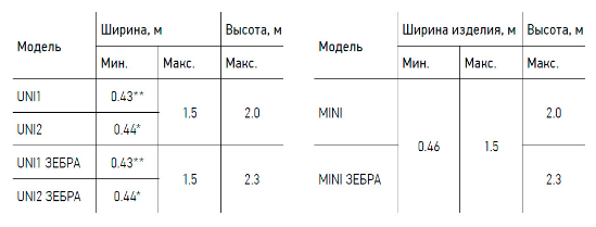 - Проверяем максимальную высоту намотки выбранной ткани индивидуально для каждой системы (см. таблицы приложения 1 для рулонных тканей и приложения 2 для тканей ЗЕБРА)