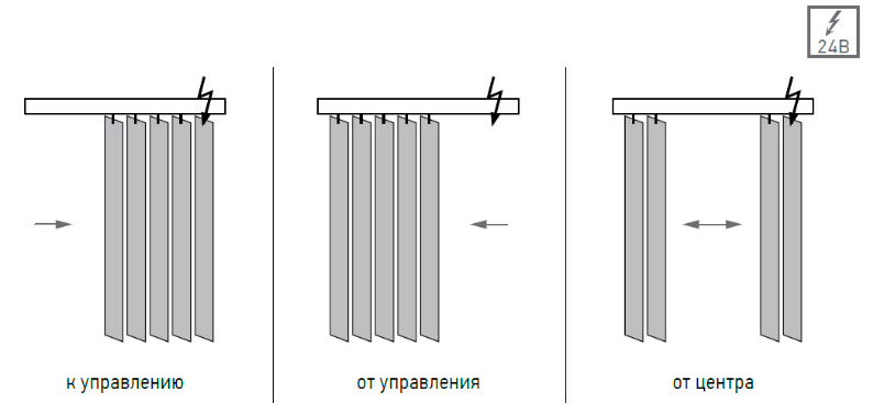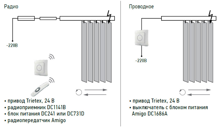 Моторизация вертикальных жалюзи осуществляется при помощи немецких приводов Trietex и автоматики Amigo