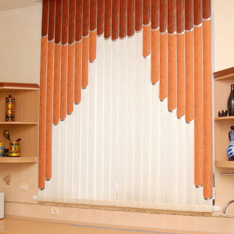 Вертикальные жалюзи представляют собой конструкцию, которая состоит из карниза и вертикальных ламелей (полосок). Ламели могут быть из ткани (с пылеотталкивающей и антистатической пропиткой), качественного и гипоаллергенного пластика, алюминия, а также есть специальные модели, которые состоят из воздушных нитей, которые крепятся к карнизу. Ламели двигаются на 180 градусов вокруг оси, что позволяет более точно регулировать световой поток.